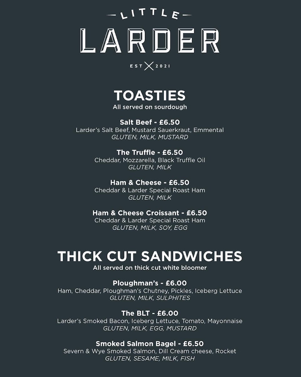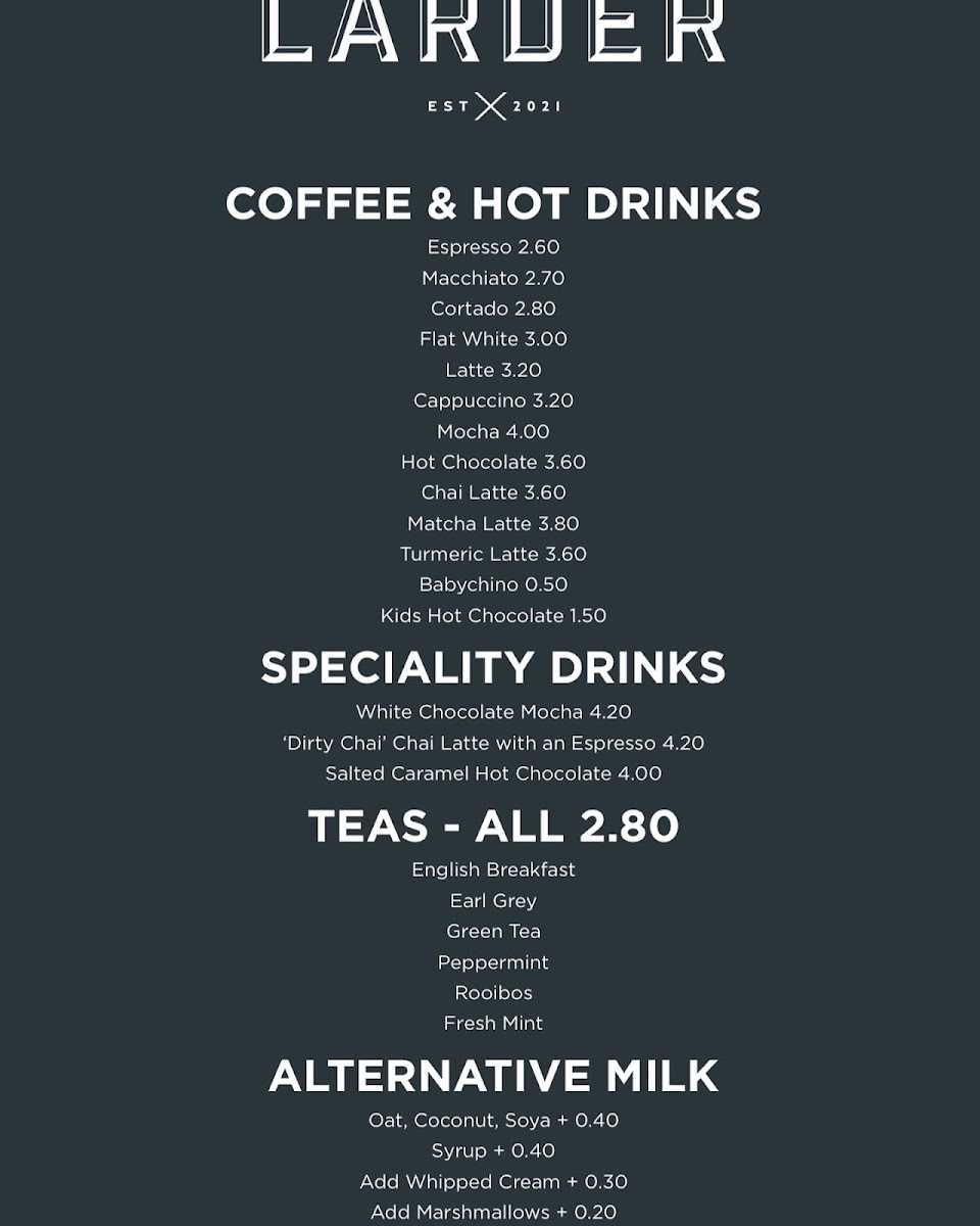 This combination of drinks and casual bites fits well with Little Larder’s calm atmosphere, making it an easy place to pause, enjoy a moment, and recharge. Whether you’re catching up with friends or grabbing a quick snack, the menu supports both a quick break and a comfortable stay.